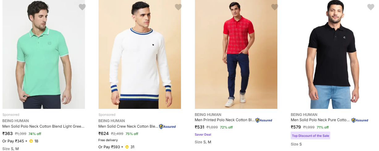 BEING HUMAN Men's T-Shirt Minimum 75% Discount on Flipkart