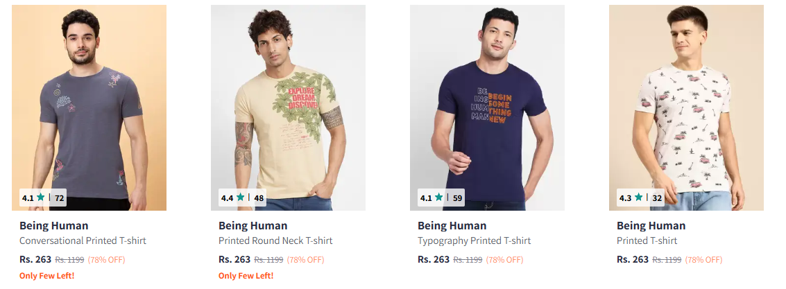 Being Human Men's T-shirts upto 78% Discount is available on Myntra.