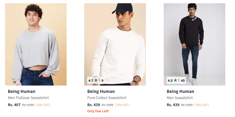 Being Human Sweatshirts Starting @ ₹407 On Amazon