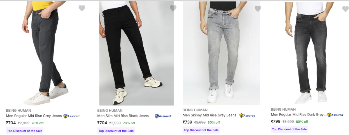 Being Human Men's Jeans upto 80% Discount | Starting at ₹704 available online in India at an offer price of ₹704 on Flipkart. Discounted Price: ₹704. This deal was updated by @radhika on 05th October, 2025 at 5:12 PM.