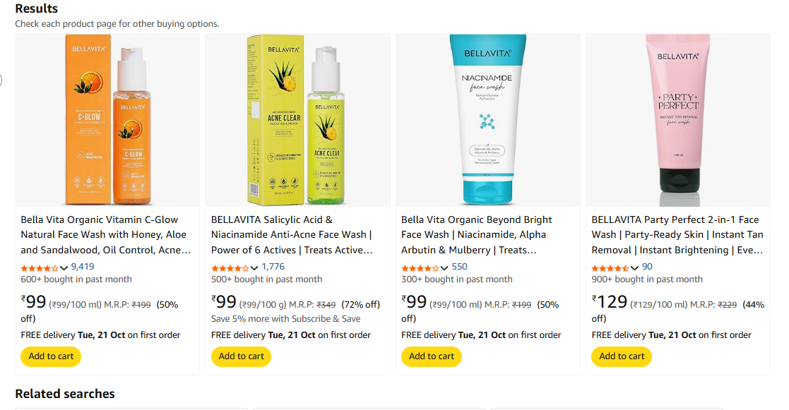Bellavita Face Wash Starting @ ₹99 On Amazon.