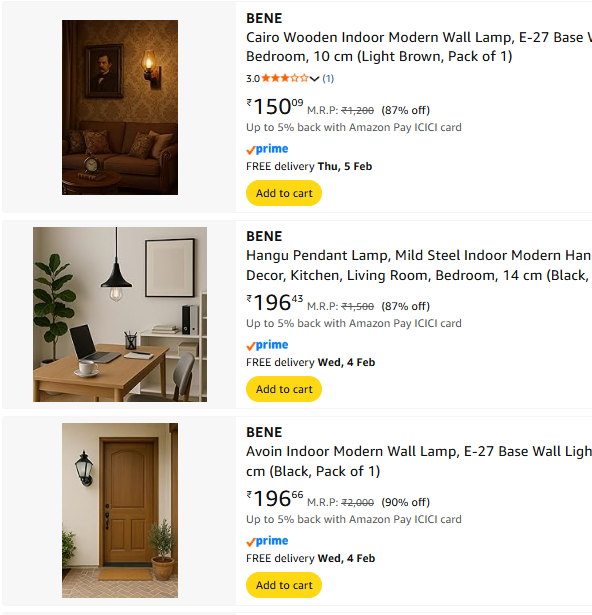 BENE Pendant Lamp Upto 90% Off on Amazon.