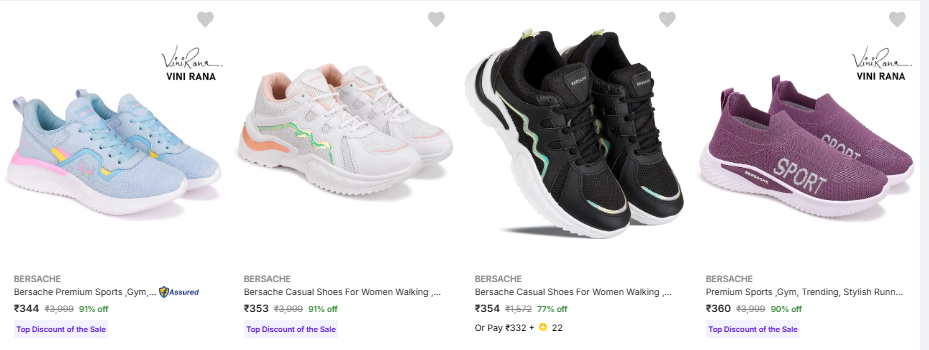 Bersache Women's Sports Shoes at minimum 80% Discount available online in India (80% discount from MRP) on Flipkart. Discount: 80%. This deal was updated by @nirali on 16th October, 2025 at 11:09 AM.