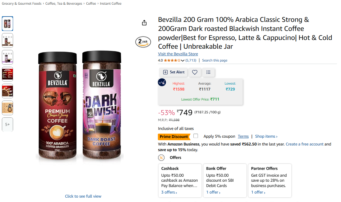 Bevzilla 200 Gram x 2 Vanilla Flavoured Instant Coffee Powder Instant Coffee (2 x 200 g, Vanilla Flavoured)