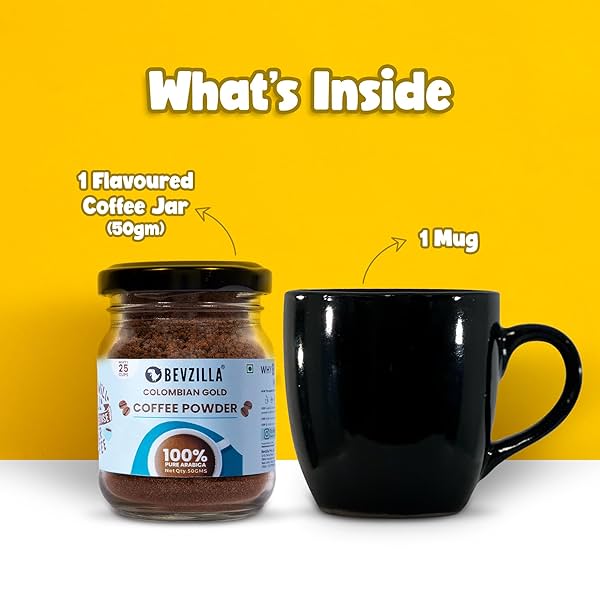 Bevzilla Colombian Gold Premium Edition Pack - Free Coffee Mug | 100% Arabica Beans | Instant Coffee | 50 gms Pack | Makes up to 25 cups | Best for Espresso, Latte, Cappuccino.