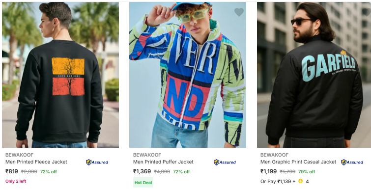 Bewakoof Mens Jackets Upto 79% Off