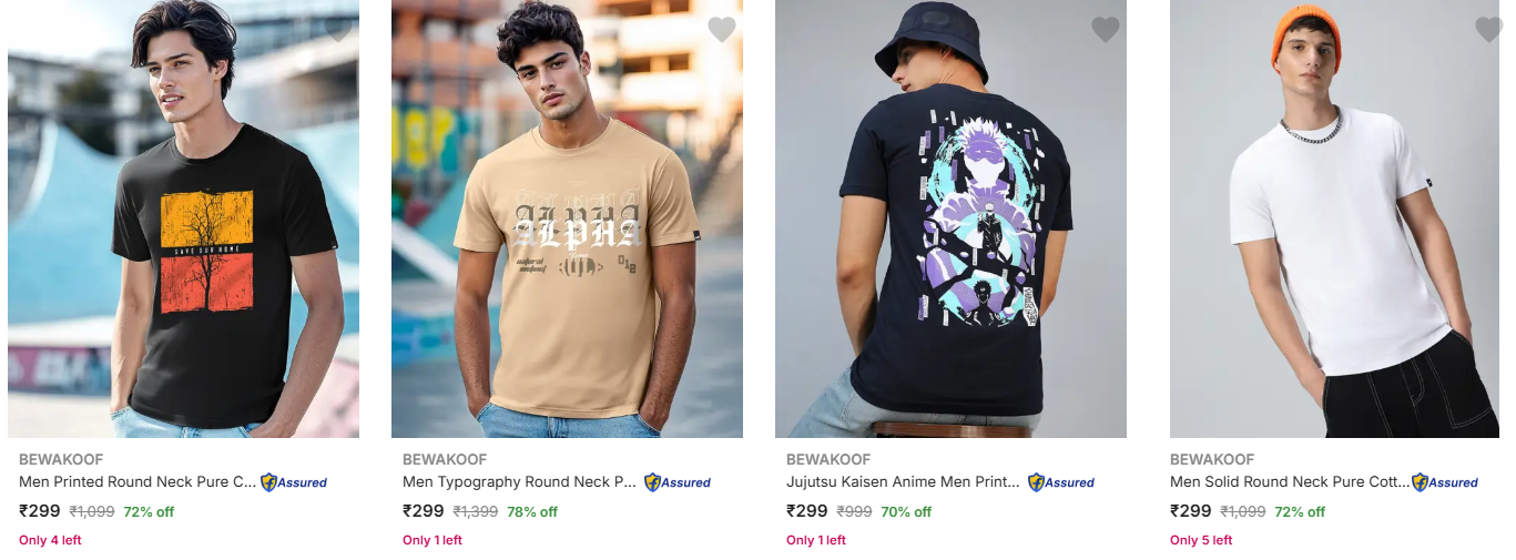 Bewakoof Men's T-Shirts upto 78% Discount is available on Flipkart.
