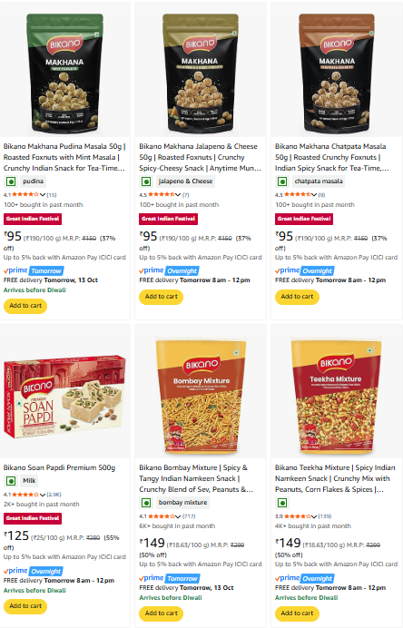 Bikano Items Starting @ ₹95 at Amazon.
