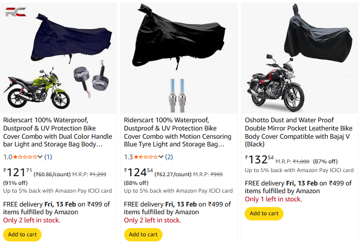 Bike Body Cover at Starting ₹121, Available on Amazon.