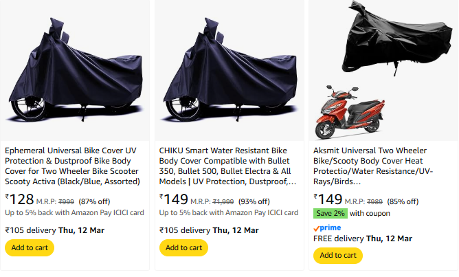 Bike Body Cover Starting @ ₹128 on Amazon.