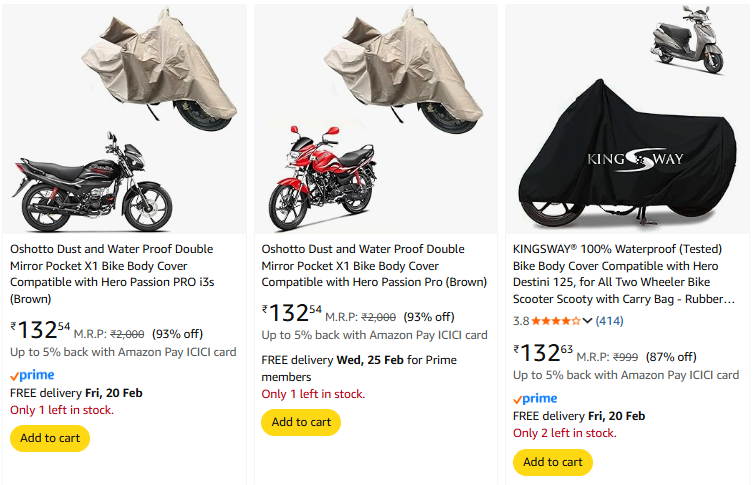 Bike Body Cover at Starting ₹132, Available on Amazon.