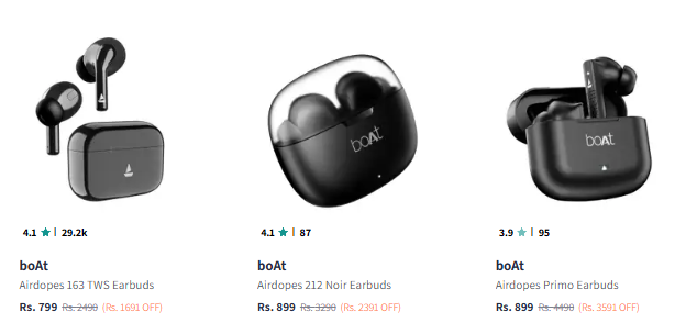 Boat Earbuds Starting @ ₹799 at Myntra.
