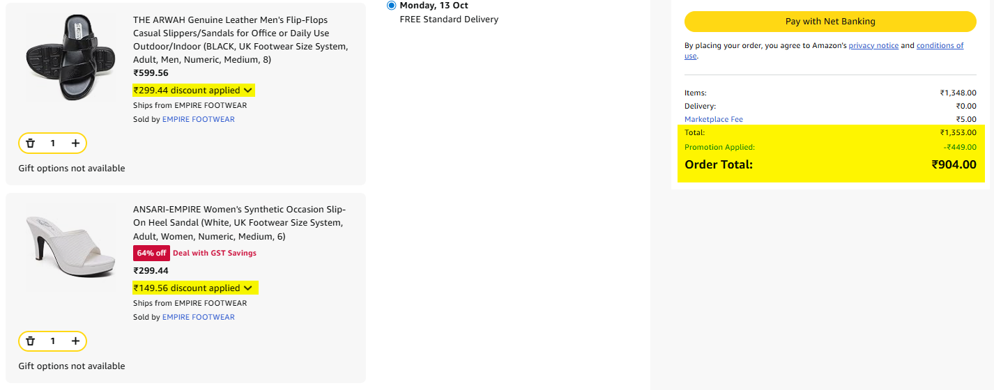Buy 1 Get 1 Free on Footwear is available on Amazon.