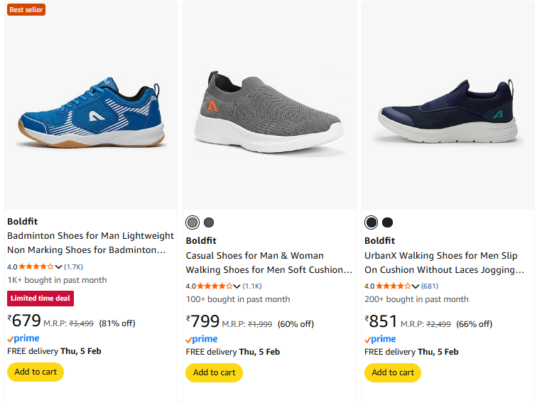 Boldfit Shoes @ Up to 81% OFF available online in India (81% discount from MRP) on Amazon. Discount: 81%. This deal was updated by @suresh on 02nd February, 2026 at 2:40 PM.