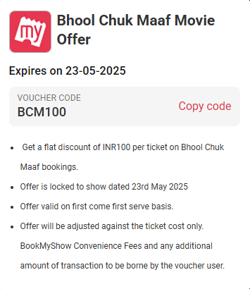 🎬 BookMyShow Offer: Free Movie Ticket on Bhool Chuk Maaf Movie ✨