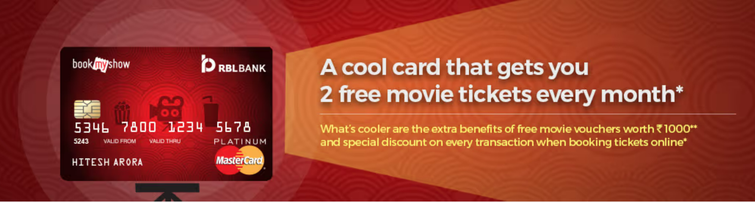 BookMyShow is running an offer where you will get with RBL Bank Credit Card Get 2 free movie tickets every month.