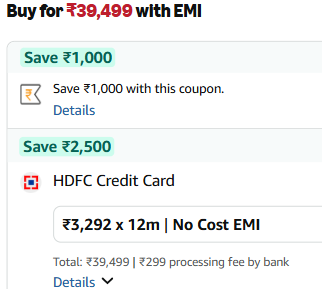 Incl.₹2500 off HDFC Bank CC EMI + ₹1000 Coupon