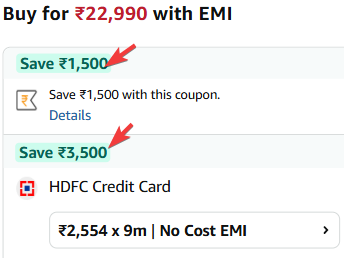 Incl.₹3500 off HDFC Bank CC With EMI +1500 Coupon