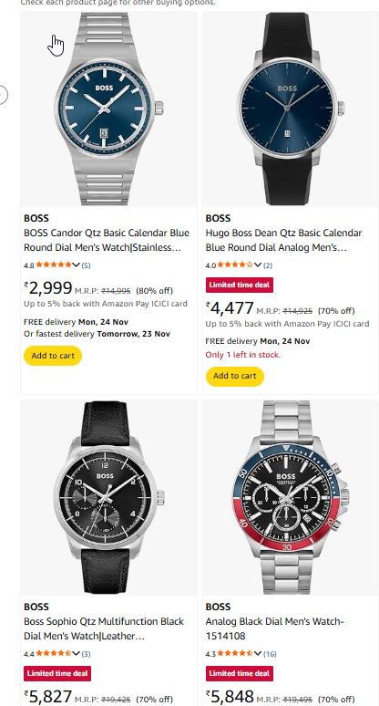 Boss Men Analog Watch up to 80% Discount