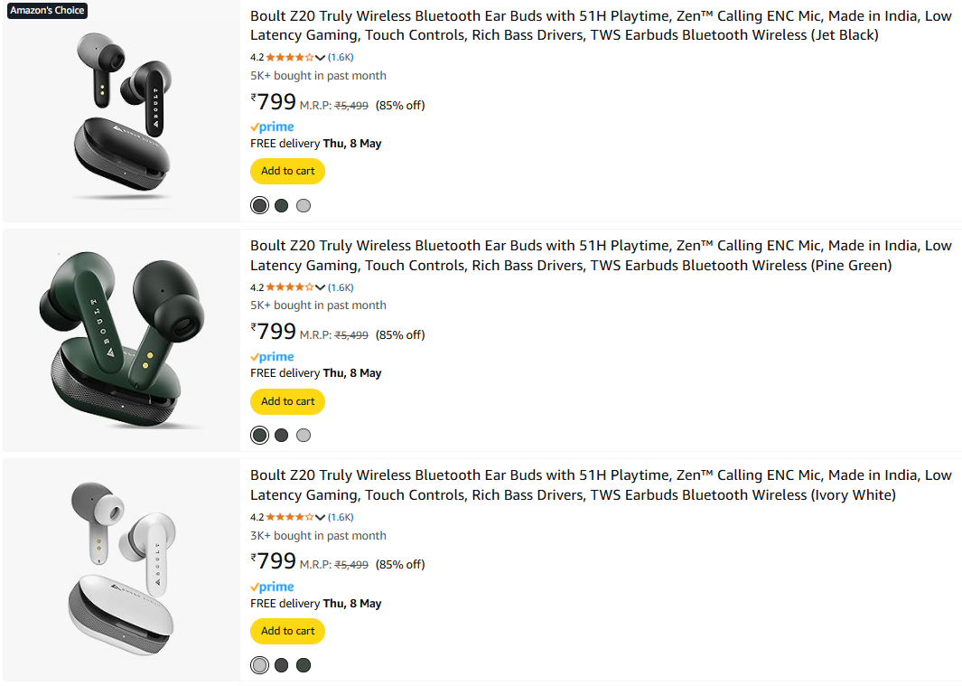 Boult Z20 Truly Wireless Ear Buds Flat 85% Discount