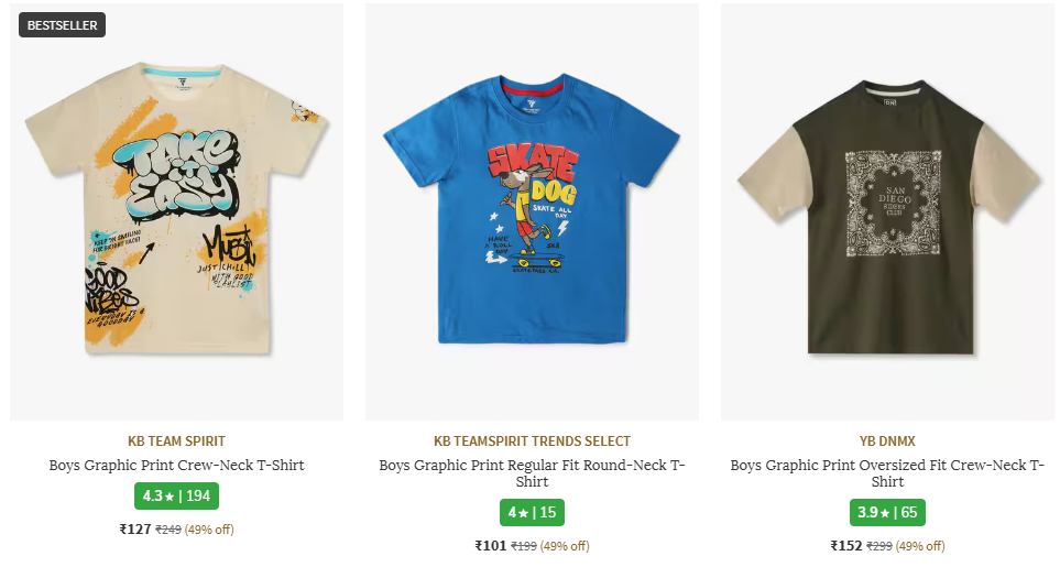 Boys Clothing @ Under ₹199, Available on Ajio.