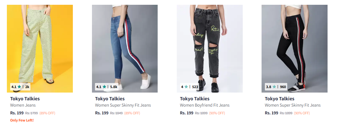 Branded Women's Jeans upto 90% Discount | Starting at ₹199 is available on Myntra.