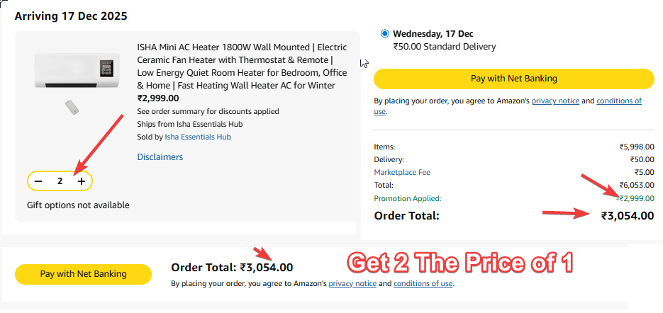 Buy 2 1800W Ac Heater For The Price of One