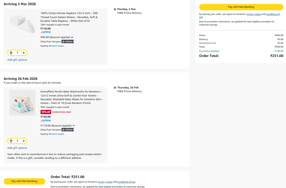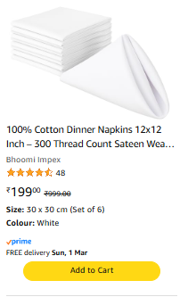 Buy Any 1 item & Get 1 Benifit (Napkins) Free