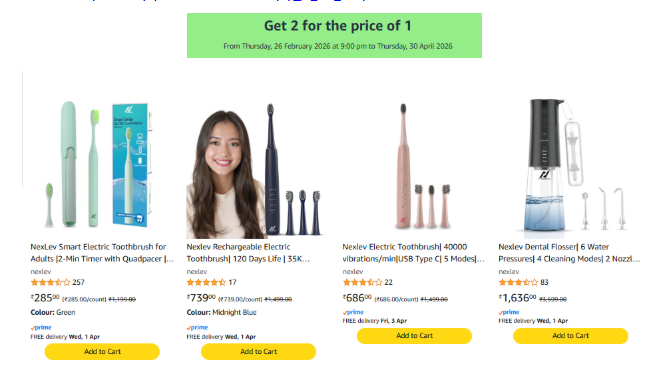 beatXP Vista Sonic Electric Toothbrush for Adults with 2 Brush Heads & 5 Cleaning Modes | Rechargeable Electric Toothbrush | 30000 strokes/min with Long Battery Life (Blue)