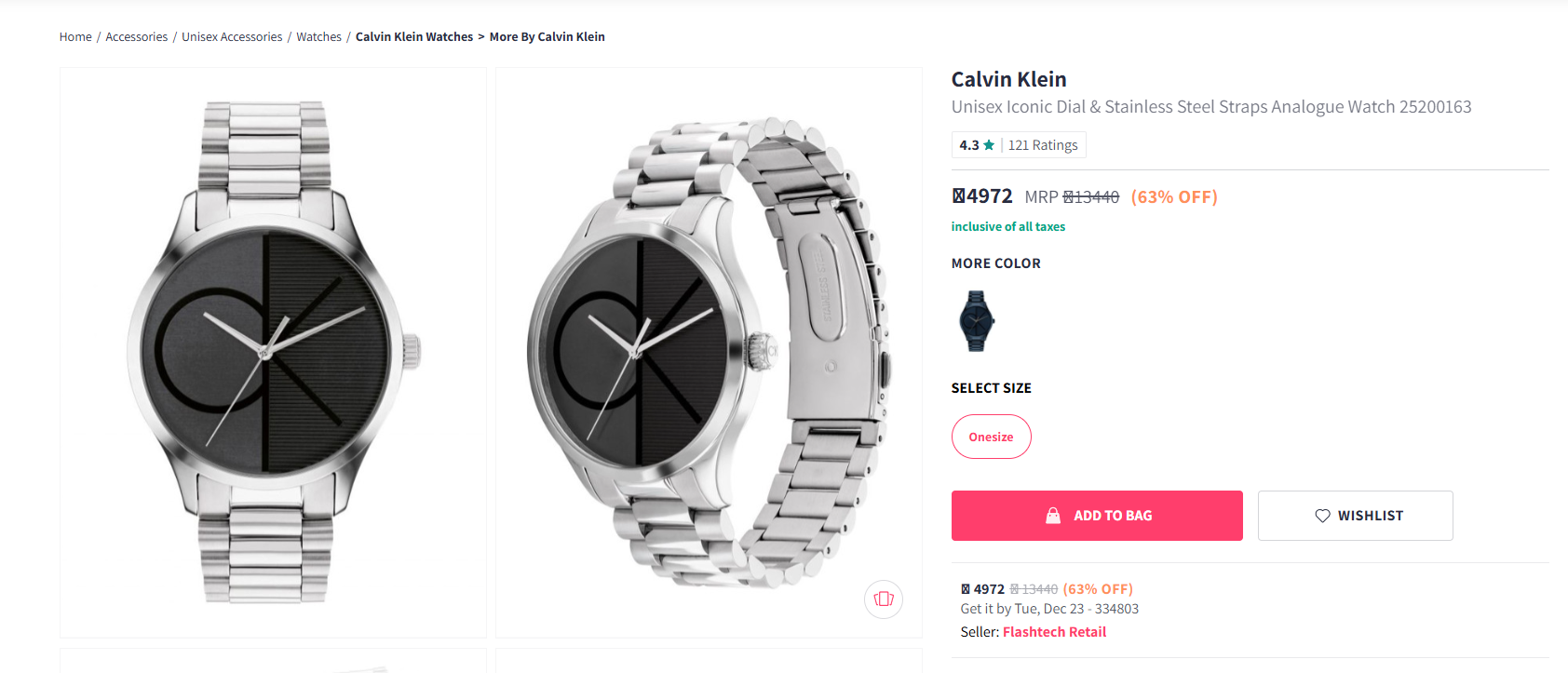 Calvin Klein Unisex Iconic Dial & Stainless Steel Straps Analogue Watch 25200163