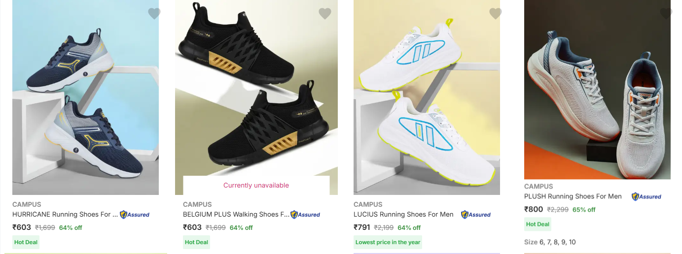 Campus Men’s Sports Shoes upto 65% Discount is available on Flipkart.