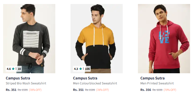 Campus Sutra Men Sweatshirt Minimum 70% Discount