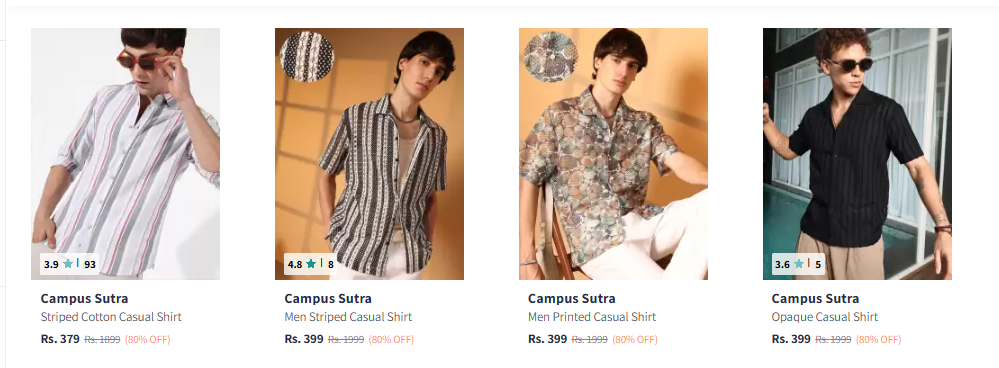 Campus Sutra Men's Clothing Minimum 80% Discount is Available @ Myntra