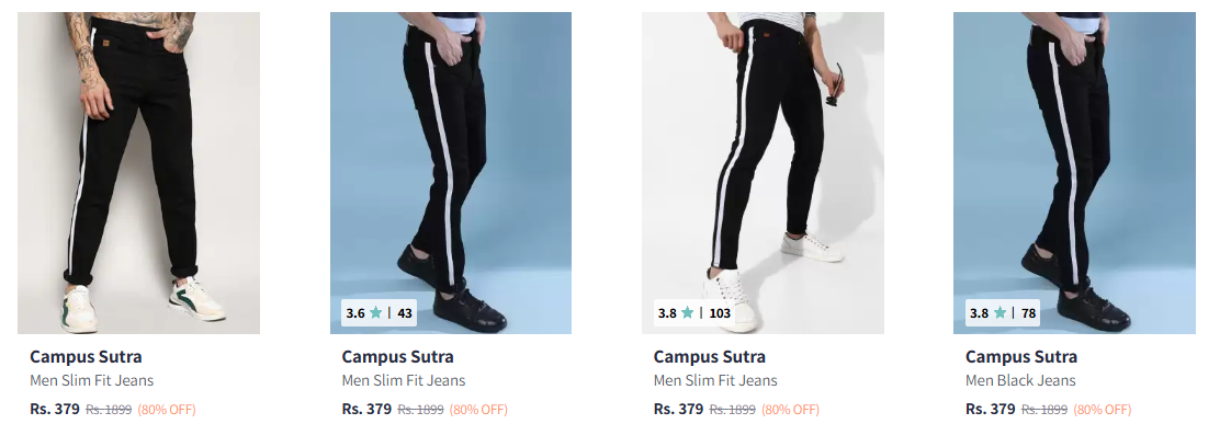 Campus Sutra Men's Jeans at minimum 70% Discount is available on Myntra.