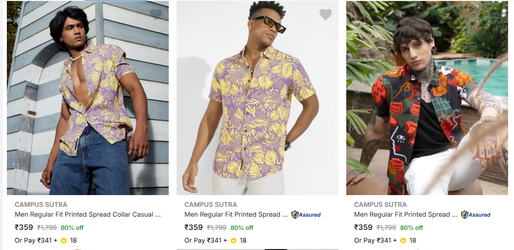 Campus Sutra Men's Shirts upto 80% Discount is available on Flipkart.