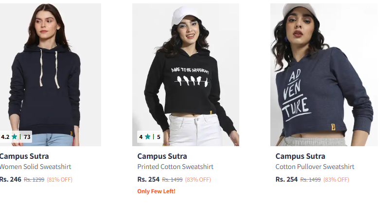 Campus Sutra Women's Sweatshirt at Minimum 80% Discount