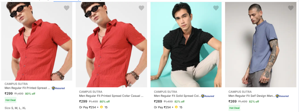Campus Sutra Men's Shirts at minimum 70% Discount