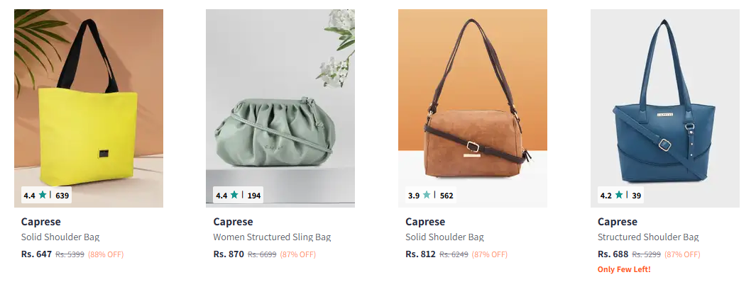 Caprese Handbags upto 88% Discount is available on Myntra.