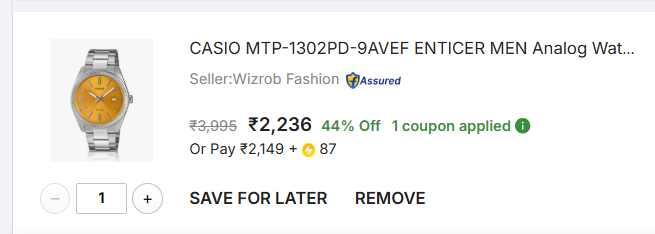 CASIO ENTICER MEN Analog Watch - For Men A2369 (MTP-1302PD-9AVEF)