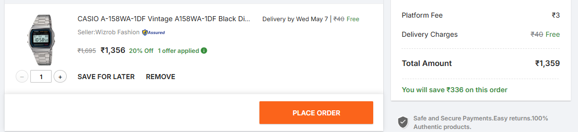 CASIO Vintage A158WA-1DF Black Dial Silver Stainless Steel Band Digital Watch - For Men & Women D011
