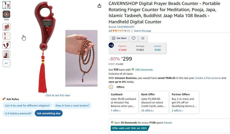 CAVERNSHOP Digital Prayer Beads Counter - Portable Rotating Finger Counter for Meditation, Pooja, Japa, Islamic Tasbeeh, Buddhist Jaap Mala 108 Beads - Handheld Digital Counter