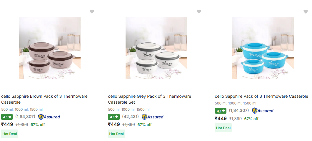Cello Casseroles Set [Pack of 3] @ ₹449, Available on Flipkart.