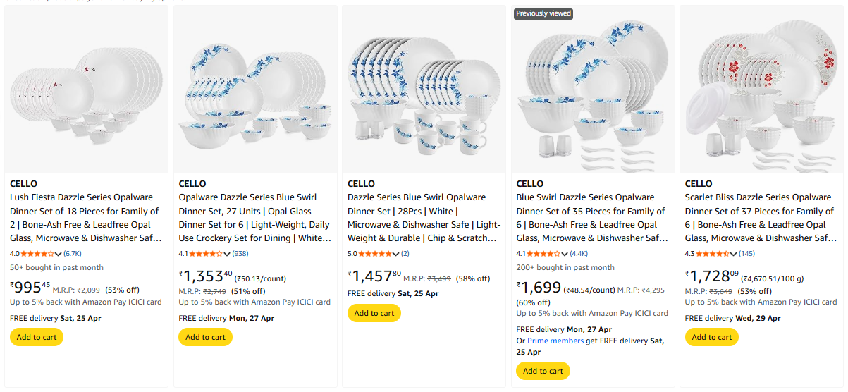 CELLO Dinner set upto 50% discount on amazon