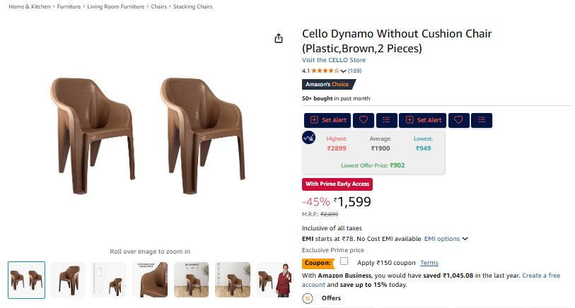 Cello Dynamo Without Cushion Chair (Plastic,Brown,2 Pieces).
