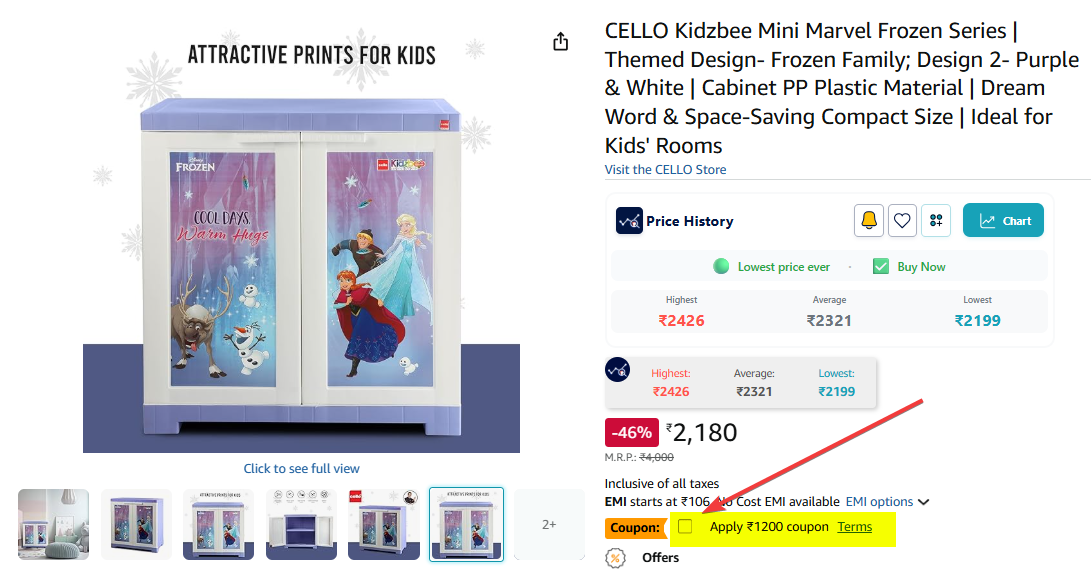 CELLO Kidzbee Mini Marvel Frozen Series | Themed Design- Frozen Family; Design 2- Purple & White | Cabinet PP Plastic Material | Dream Word & Space-Saving Compact Size | Ideal for Kids' Rooms