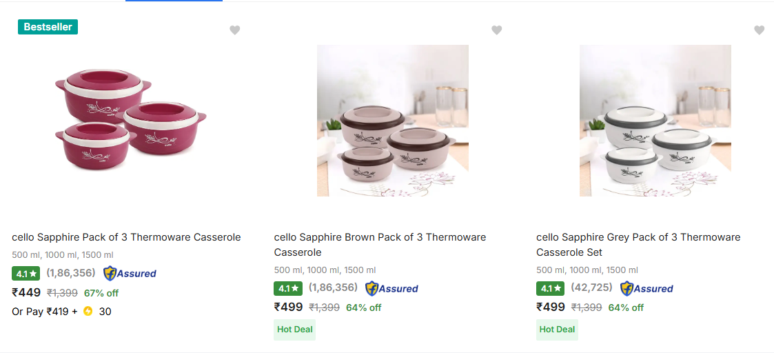 Cello po3 Casseroles @ ₹449 only.