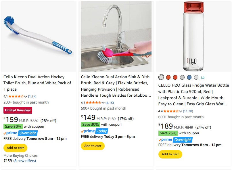 Cello Products Starting @ ₹149 on Amazon.