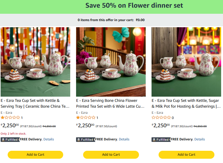 Ceramic Bone China 15Pc Tea Set @ ₹1125, Available on Amazon.