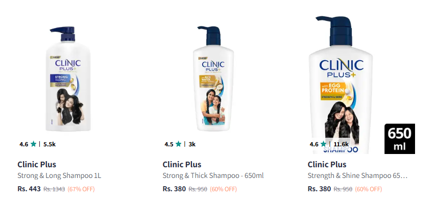 Clinic Plus Shampoo upto 67% Discount is available on Myntra.