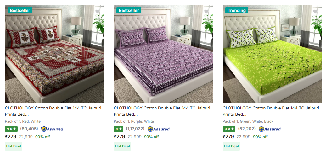 Clothology Bedsheets upto 90% Discount is available on Flipkart.